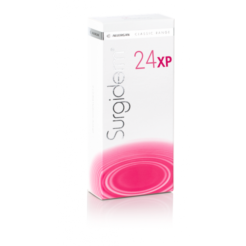 Buy Surgiderm 24XP Online is a sterile hyaluronic acid dermal filler made using a patented cross-linking process known as 3D Hyaluronic Acid Matrix Technology. This technology ensures that Surgiderm 24XP can withstand degradation and last longer than other hyaluronic fillers. Manufactured by Corneal Group, this injectable filler gel is indicated for correcting medium skin depressions and lip definition. The injectable solution comes prefilled in two 0.8ml syringes and is packaged with an instruction leaflet, 4 single-use 30G ½” sterile needles, as well as two sets of labels to ensure traceability.